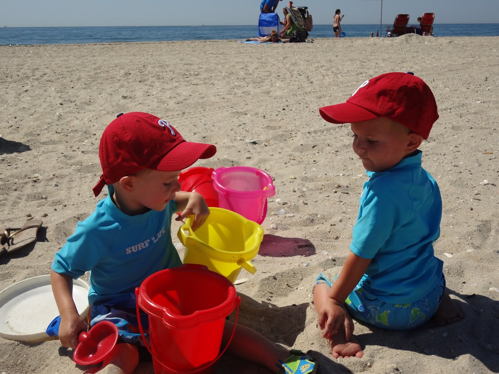 The boys really liked playing in the sand. Their favorite word was "rock". They loved finding rocks and putting them in their pockets or the sand buckets.